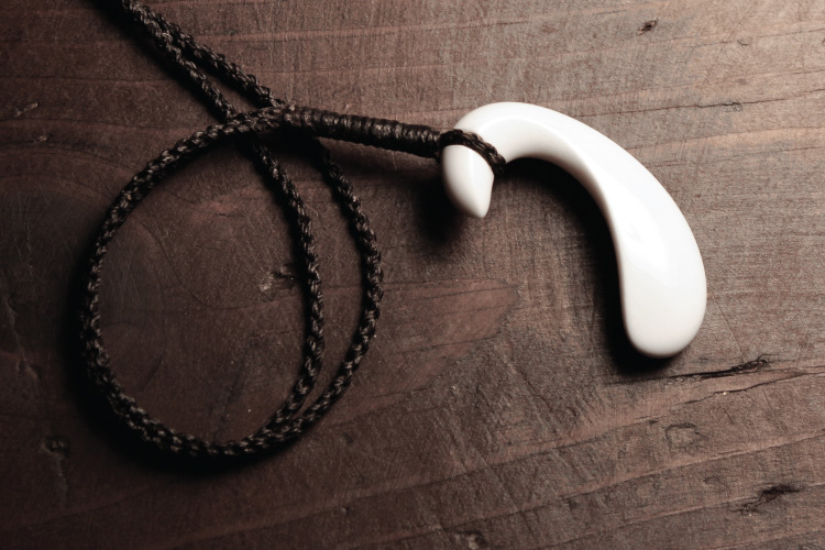 This pendant is bound by hand with a traditional style brown cord braid and features a bone toggle to hold the necklace together. Add $7.00 USD for Shipping and Handling.