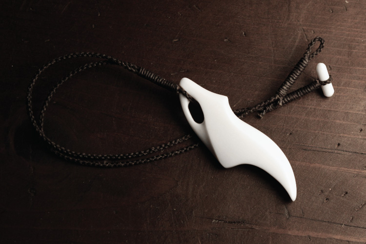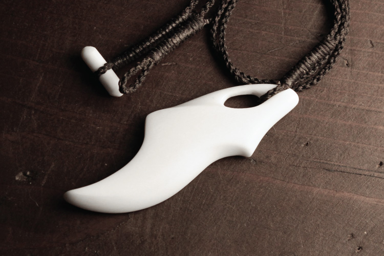 One of my first designs, this wolf's tooth bone carving symbolizes the unity of the wolf pack.